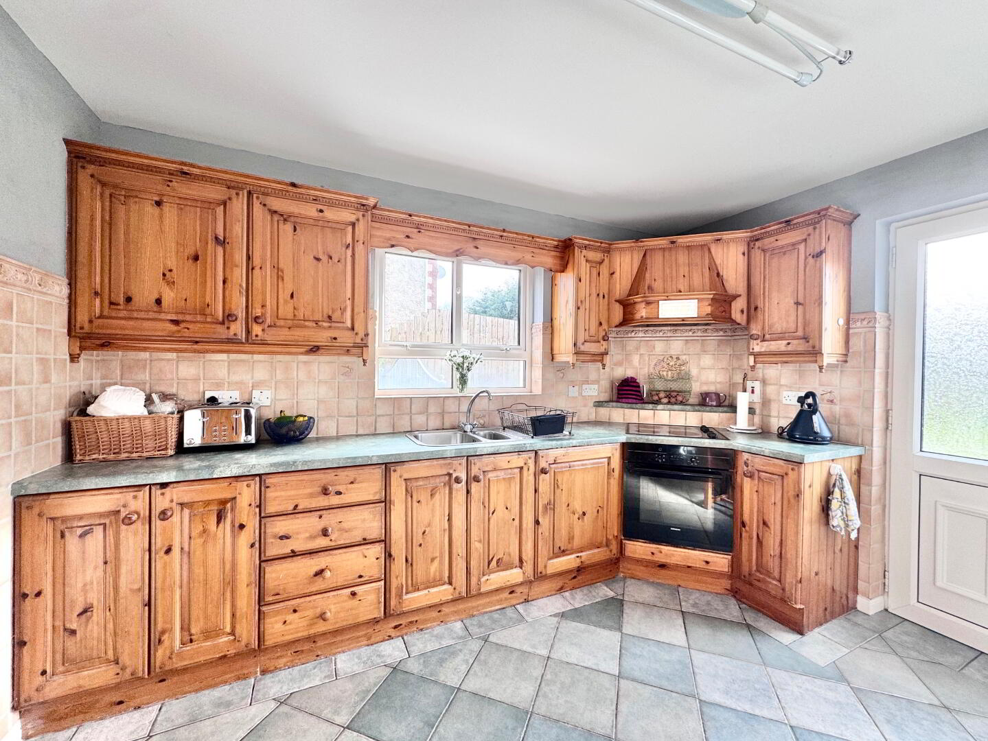Solid pine kitchen fitted with high & low level units