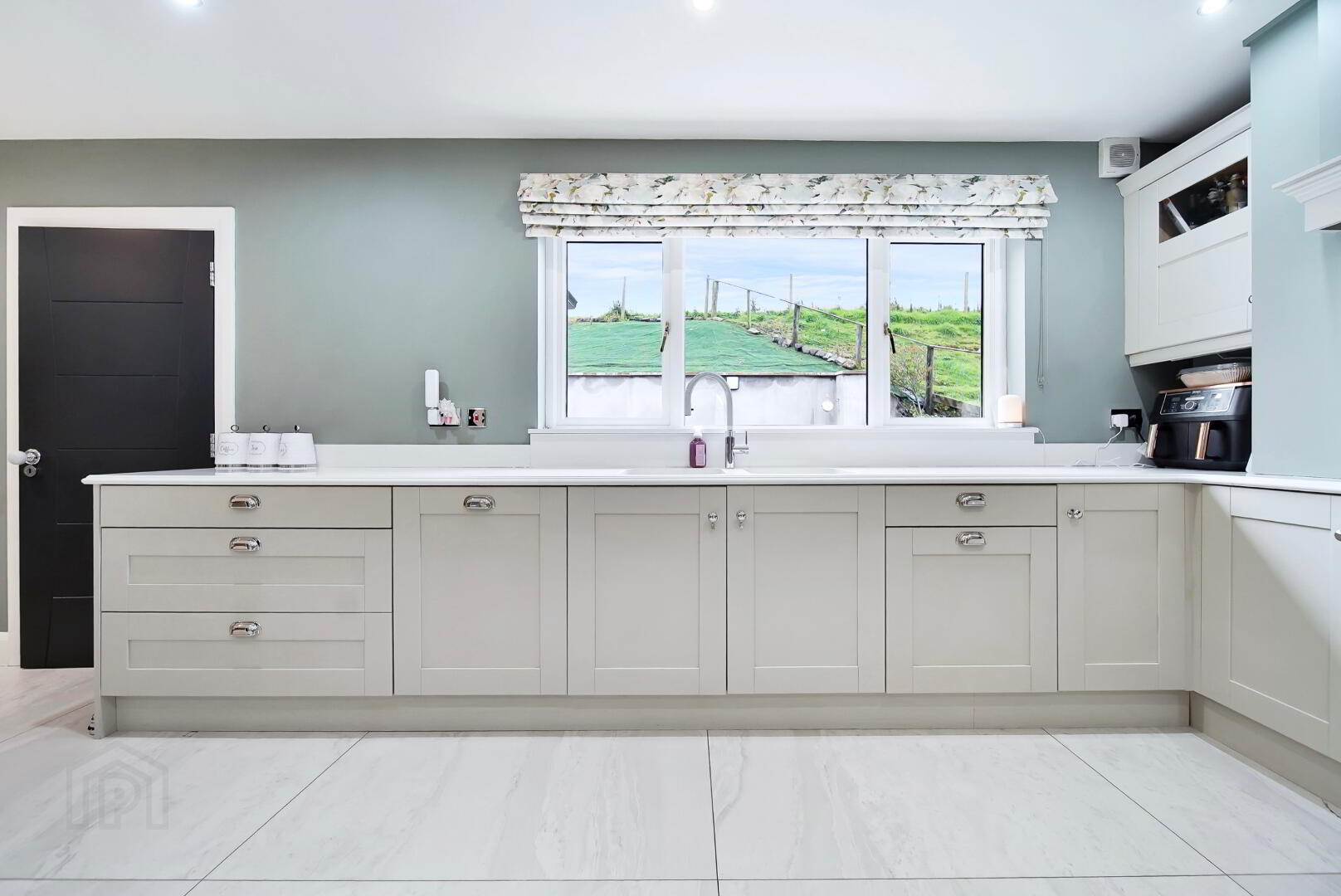 An excellent opportunity to purchase a stunning detached home, sitting on approximately 8 acres, located on an elevated site just off the main Omagh/Drumquin Road. An impressive home which enjoys well proportioned accommodation. Offering a spacious lounge with feature wood burning stove, bespoke modern fitted kitchen with silestone counters and large island, a sunroom with fabulous views over the countryside and 5 bedrooms. With automatic gates and a sweeping driveway leading to the property, detached garage and purpose built equestrian facilities, this property is sure to attract a lot of interest. Viewing is highly recommended to appreciate all this home has to offer.